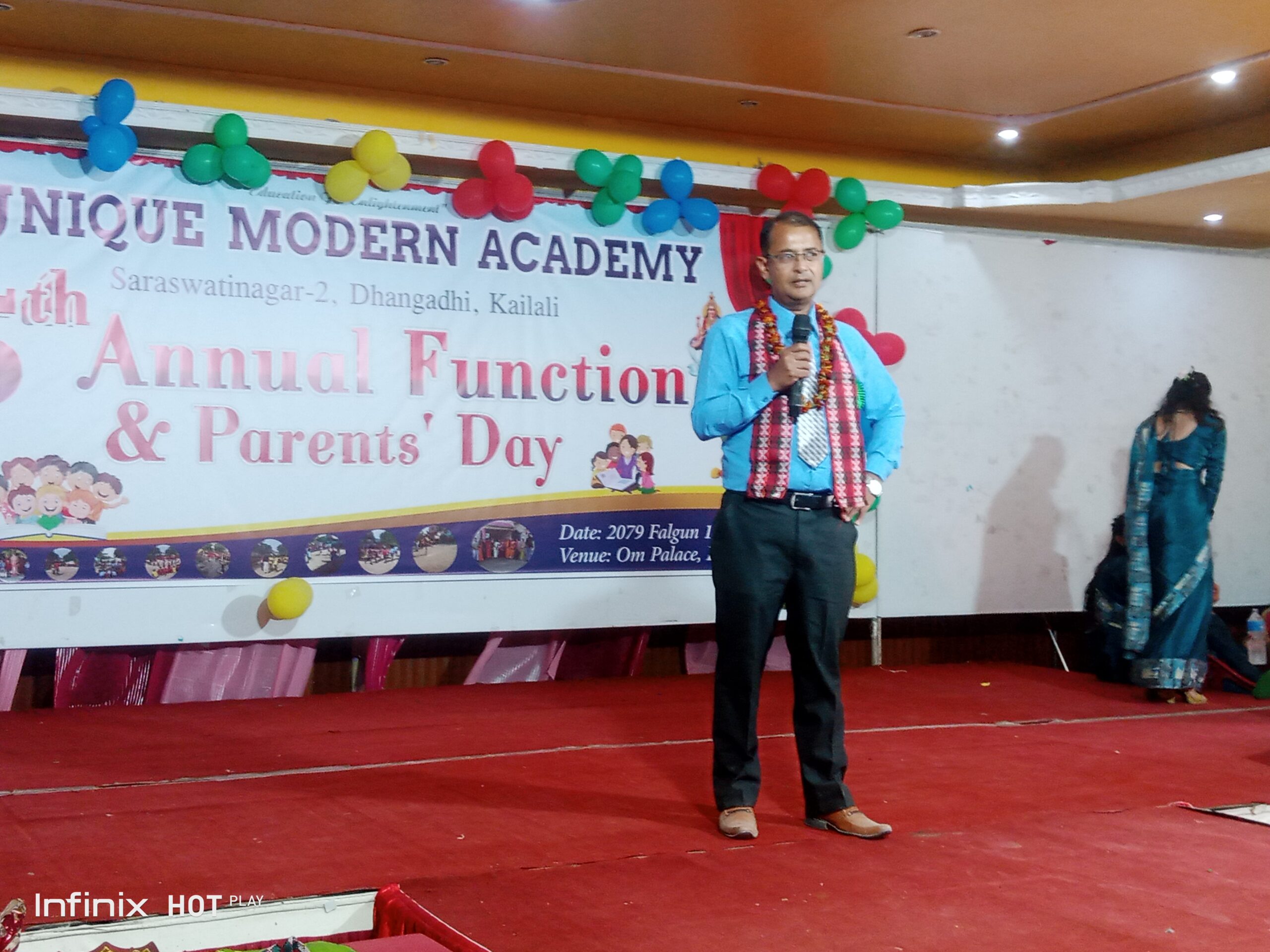 धनगढी । शुक्रबार युनिक मोर्डन एकेडेमी स्कुलले १५ औं वार्षिकोत्सव तथा अभिभावक दिवस मनाएको छ । धनगढी उप-महानगरपालिका वार्ड न. २ मा रहेको यस स्कुलले शुक्रबार (फागुन १९ गते) १५ वर्ष पुरा गरी १६ वर्षमा प्रवेश गरेको छ । कार्यक्रममा सो विद्यालयमा अध्यनरत विद्यार्थी र अभिभावकको बाक्लो उपस्थिति रहेको थियो । कार्यक्रममा बोल्दै विद्यालय व्यवस्थापन समितिकी अध्यक्ष एवं वडा नं.२ की पूर्व वडा सदस्य तथा धनगढी उप-महानगरपालिकाकी निवर्तमान न्यायिक समिति सदस्य रत्ना बिष्टले बालबालकालाई उपहार नदिएर राम्रो संस्कार सिकाउन अभिभावकलाई आग्रह गर्नुभयो ।