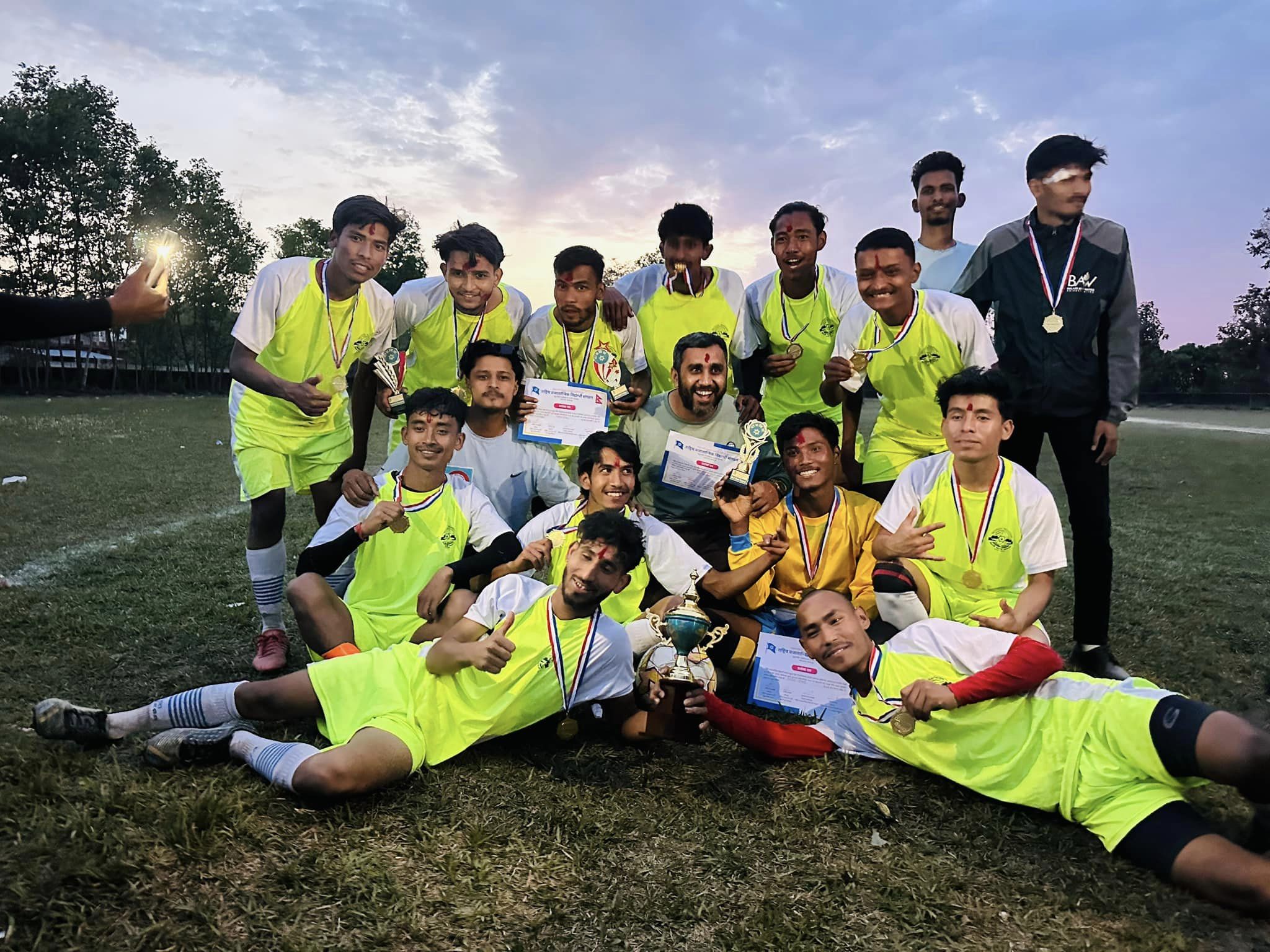 धनगढी । महेन्द्रनगरमा आयोजित कलेज स्तरीय फुटबल टुर्नामेन्ट कैलाली बहुमुखी क्याम्पसले जितेको छ ।
