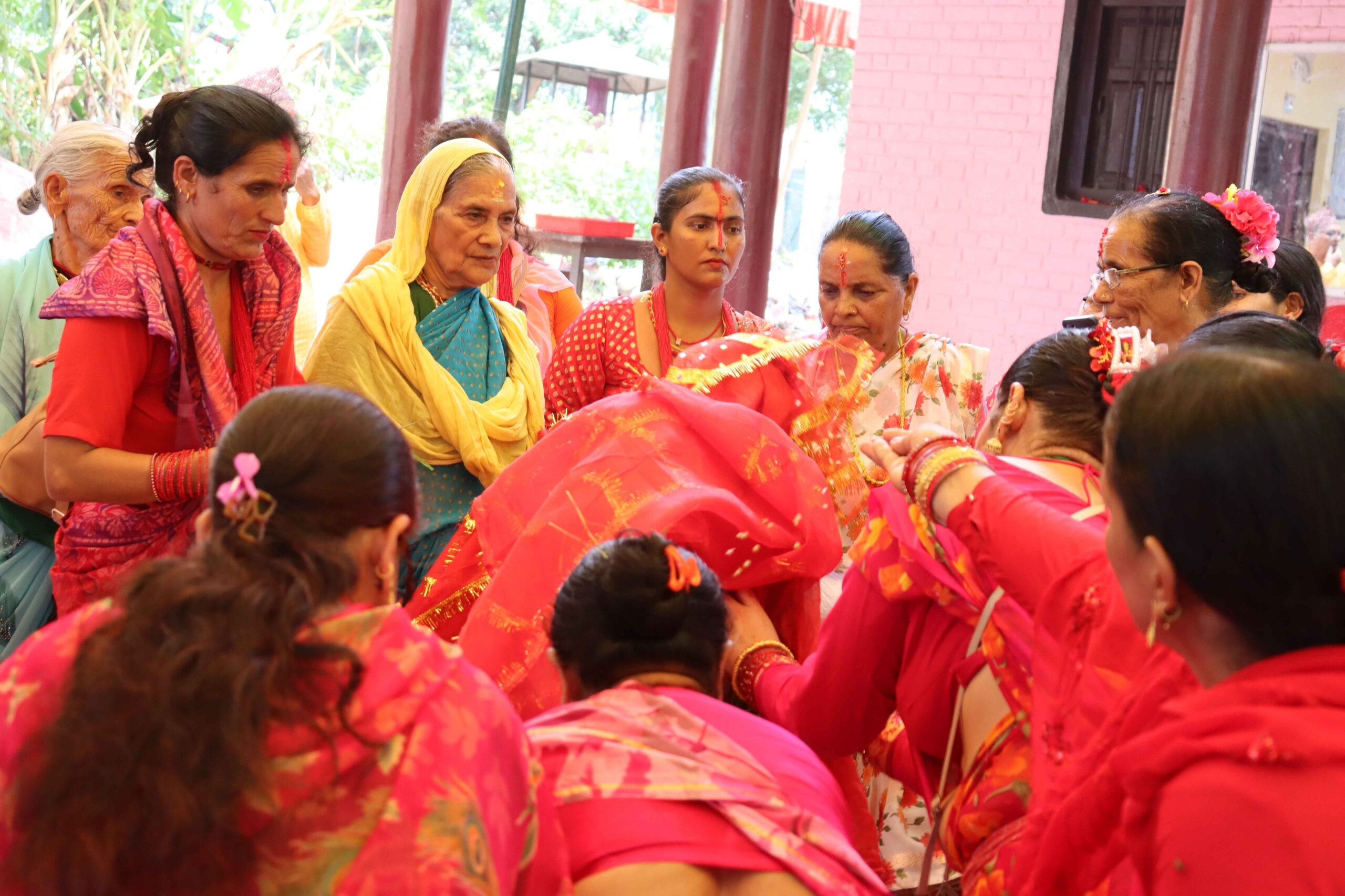महिलाहरूको सप्तमी र दुबीधागो लाउने संस्कारलाई पुरुषहरुको व्रतवन्ध र जनैपूर्णिमासित दाँज्न सकिन्छ । फरक के छ भने पुरुषहरुको व्रतबन्ध विवाह अघि गरिन्छ जबकि महिलाहरू विवाहपछि मात्रै दुबीधागो लाउँछन् । पहिलोचोटि दुबीधागो लाउन उज्याली गोरा हुनुपर्दछ भन्ने मान्यता छ । पहिलोचोटि दुबीधागो लाउने महिलालाई ‘नौली गोरिया’ भनिन्छ । पुरुषहरूले जनै फुकाल्नु हुन्न भनेजस्तै महिलाहरूले सप्तमी र दुबीधागो फुकाल्नु हुँदैन । यसरी नै पुरुषहरुले जनै पूर्णिमामा पुरानो जनै फेरे जस्तै महिलाहरू गौराको दिन पुरानो दुबीधागो फेरेर नयाँ दुबीधागो लाउँछन् । यसपछि व्रत बसेका महिलाहरु बिरुडाले घर, परिवार, इष्टमित्र र आफन्तहरूको शरीरको (विशेषगरी शिरको) पूजा गर्दै आशीर्वचन दिन्छन् । यसलाई स्थानीय भाषामा मुन्डो पुज्ने (शिर पूजा) भनिन्छ । मुन्डो पुजेपछि महिलाहरुको व्रत उपवास र धार्मिक– सांस्कारिक अनुष्ठान समाप्त भएको मानिन्छ ।