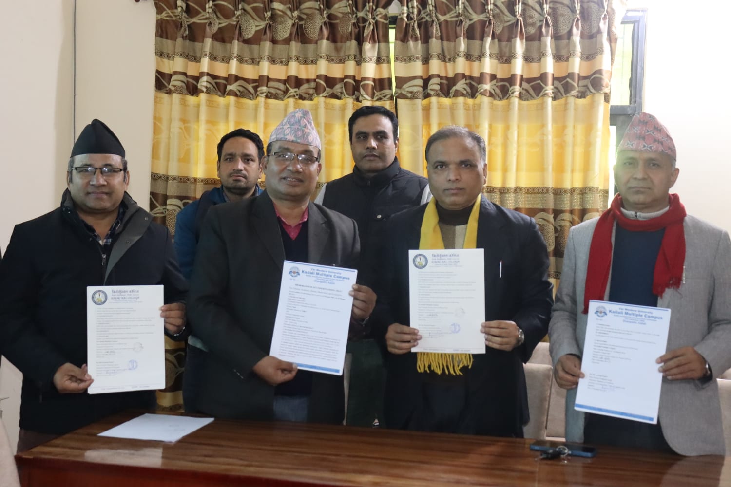 सम्झौतापत्रमा हस्ताक्षर कार्यक्रम कैलाली बहुमुखी क्याम्पसमा सम्पन्न भएको होे। कार्यक्रममा क्याम्पसका सहायक क्याम्पस प्रमुखहरू सह–प्राध्यापक डा. मोहनसिंह साउद, सह–प्राध्यापक डा.शिवप्रसाद सापकोटा र सह–प्राध्यापक डा. घनश्याम भट्ट सहित विभिन्न विभागका प्रमुख तथा प्राध्यापकहरूको उपस्थिति रहेको थियो।