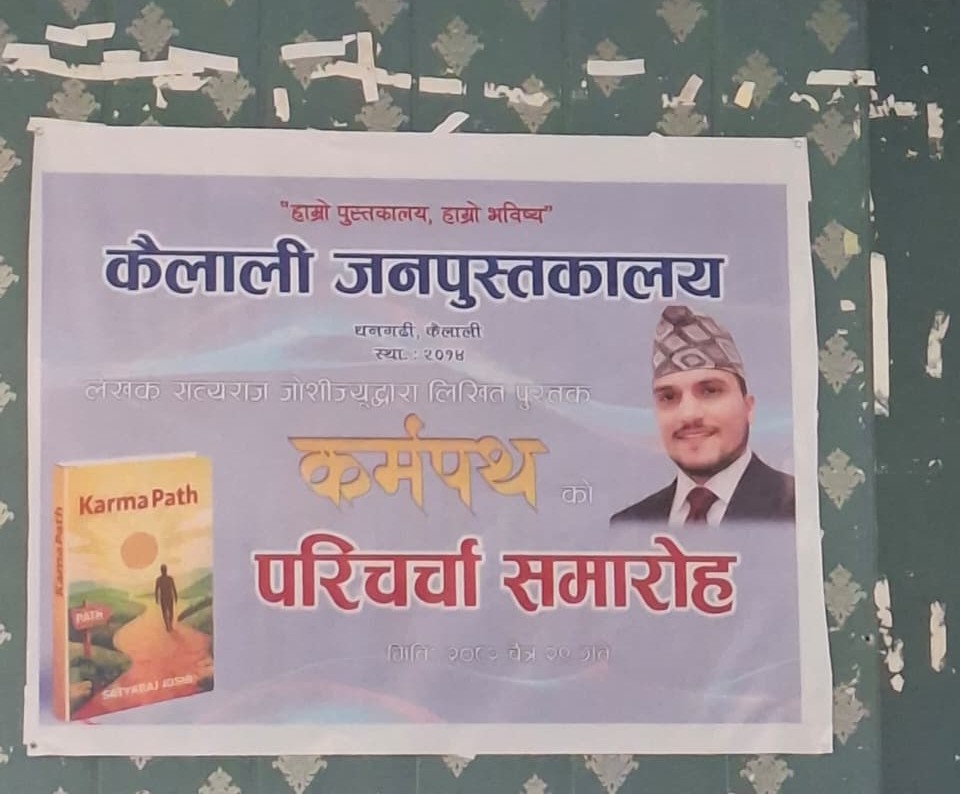 धनगढी । सत्यराज जोशीद्वारा लिखित अङ्ग्रेजी भाषाको पुस्तक कर्मपथ माथि परिचर्चा कार्यक्रम सम्पन्न भएको छ। आइतबार धनगढीस्थित जनपुस्तकालय हलमा आयोजित कार्यक्रममा पुस्तकका विषयवस्तु, शैली र दार्शनिक पक्षबारे छलफल गरिएको हो।